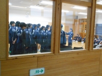 2017年10月18日 14時30分今日は2年生の合唱リハーサルです。1.3年生と同じく、登壇、紹介、礼、合唱、降壇の順で、本番さながらに行いました。