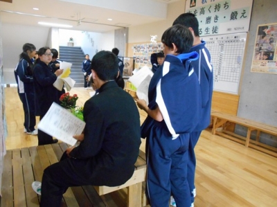 ビックアートでの生徒への連絡です。昼休み時間は20分間、その短い時間に効率的に伝えなければなりません。しかし、そこは矢吹中生、素早く集まり連絡を聞いていました。