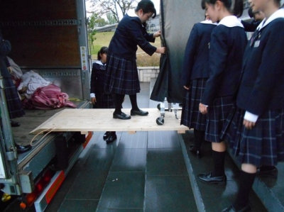 帰ってきたら、トラックから楽器を降ろさなくてはなりません。