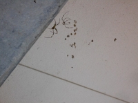 もと、蜂の巣のあったところ(すでに除去されてないですが・・)を見て、帰ろうとすると、道路にオイル跡を見つけました。