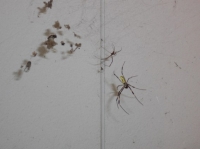 夫婦(?)のように2匹で巣にいるクモもいます。
