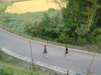 校舎の周りを走ります。校舎の周りは舗装されていますが、アップダウンが結構あって、走り込みには最適です。