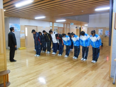 2017年10月4日 08時28分今日、明日と行われる県中体連駅伝大会に向けて特設駅伝部が出発しました。