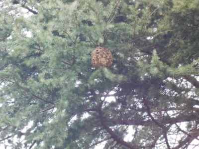 結構ヒマラヤスギの葉は揺れていましたが、スズメバチの巣はきれいに映りました。