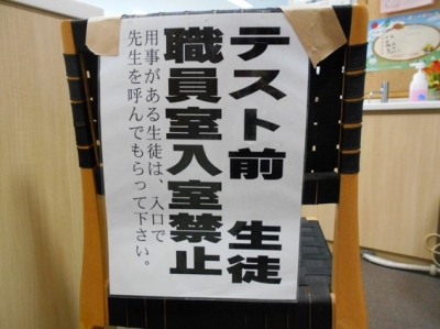 生徒は職員室への出入りが制限されます。