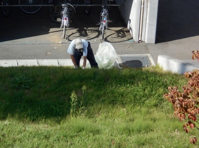 庭の匠(除草の匠?)です。土手に生えている草を一生懸命に取っています。