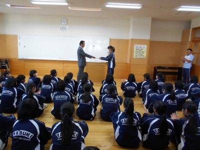 2017年9月29日 16時49分社会福祉協議会の方、町長さんが学校に来ました。