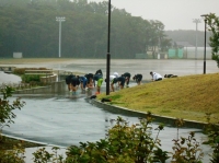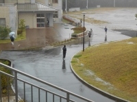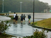 2017年9月28日 08時08分昨日の夜から降り続いている朝の雨の中、特設駅伝部の生徒が走り込みを