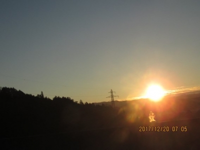 2017年12月20日 08時02分冬至も近づき、太陽もだいぶ南から上がっています。