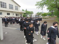 予定が大幅にずれてしまいましたが、集合が完了したクラスから矢吹中学校に向かいます。
