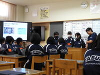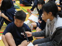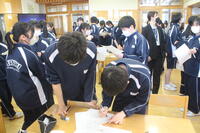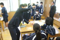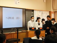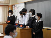 2024年5月14日 17時07分1年生は5月13日(月)3・4校時に、矢吹町社会福祉協議会のご支援により光南高校介護福祉系列の2・3年生20人を講師に招いて、「介護体験学習」を実施しました。ここでは、光南高校の先輩方が、障がい者マークなどの社会福祉についての一般知識や高齢者の介護などについて、なぞなぞを交えながら分かりやすく説明してくださりました。また、手話についても説明していただき、生徒たちは、自分の名前を手話で表現していました。生徒たちはとても楽しみながら、大変意欲的に学んでいました。矢吹町社会福祉協議会の皆様、光南高校の先輩方、本当にありがとうございました。