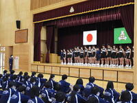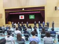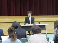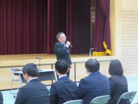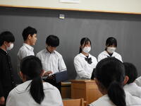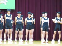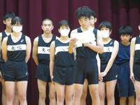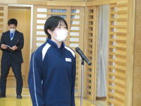 2024年5月13日 15時55分5月10日(月)4校時に、県南陸上競技大会参加生徒激励会を実施しました。会では、生徒会長の三村優奈さんが激励の言葉を述べ、選手を代表して陸上競技部部長の鈴木陽士郎君がお礼の言葉を返しました。15日の本番では、参加選手それぞれが自分の目標を達成できるような健闘を祈っています。吹奏楽部の皆さんも、選手入退場の際の行進曲演奏をしっかりありがとうございました。