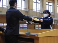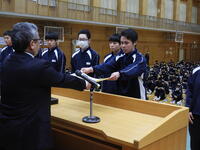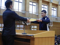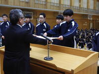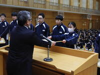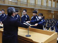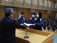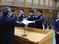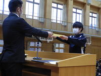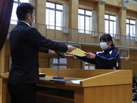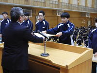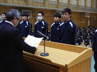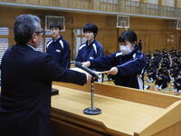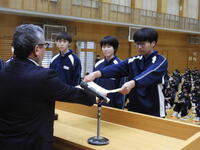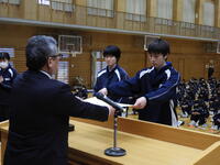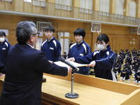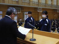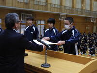 2024年2月22日 19時09分後期生徒会総会に先だって、生徒会活動の各部門でよく活動した3年生や生徒会の発展に貢献した3年生をたたえる「生徒会功労賞」の表彰を行いました。表彰を受けた3年生は、のべ31人です。受賞おめでとうございます。