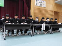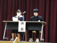 2024年2月22日 18時34分昨日21日(水)6校時に後期生徒会総会を実施しました。体育館全体にちょっとした緊張感が漂う中で、生徒会本部、各委員会、各部活動の1年間の活動のまとめと、1月末現在の生徒会費中間決算報告についての審議が行われました。それぞれの議案に学級から出された質問がなされ、各部門の担当者が立派に答弁していました。3年生が見守る中、2年生の新しいリーダーが3年生の後をしっかり引き継いでいる姿を見せることができ、頼もしい感じがしました。