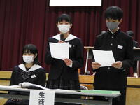 「3年生のリーダーのみなさん、重責よく果たしました。お疲れ様でした」生徒会功労賞授賞式
