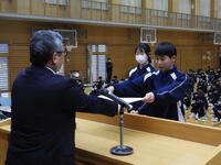 2024年2月22日 18時20分今週19日(月)に、学校賞等授賞式を行いました。ここでは、今年度学校に多大な貢献をし、他の生徒に対して模範的な行動を行った生徒に「学校賞」を、無欠席・無遅刻・無早退だった生徒に「皆勤賞」(3年間)・「精勤賞」(1年間)を、学習や読書などで他の模範となる成果を上げた生徒に「奨励賞」を授与しました。1年生から3年生までのべ193名の生徒に賞状を授与しました。素晴らしい活躍でした。受賞おめでとうございます。