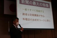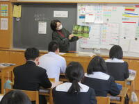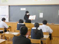 2024年3月1日 16時41分3月1日(金)に福島民報社の方をお招きしての出前授業を行いました。「正しい情報を、正しい表現で、わかりやすく伝える」と講師の鈴木俊哉様にお話を頂きました。前半はネットが子どもたちの身近にある現状を受け、ネット・テレビ・新聞の利点と欠点を示し、「正しく幅広い知識を、自分で判断できるようになることが大切です。」と教えて頂きました。後半では新聞が発行されるまでの工程の解説、わかりやすい文章の書き方指導をしていただきました。新聞作成の工程では「すごい」「知らなかった」との声が上がり、夢中で新聞記事を読む1年生の姿を見ることができました。文章の書き方指導では不慣れながらも懸命に文章を作り上げようとする生徒が多く、印象的でした。「社会のことがわかってきた!」「文章を頑張って書いてみます!」などの生徒の感想から、今後の成長が楽しみとなる有意義な授業となりました。