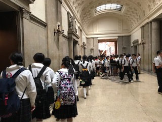 本日は朝食後、まず国会議事堂へ向かいました。修学旅行でなければ、なかなか訪問できない場所であります。