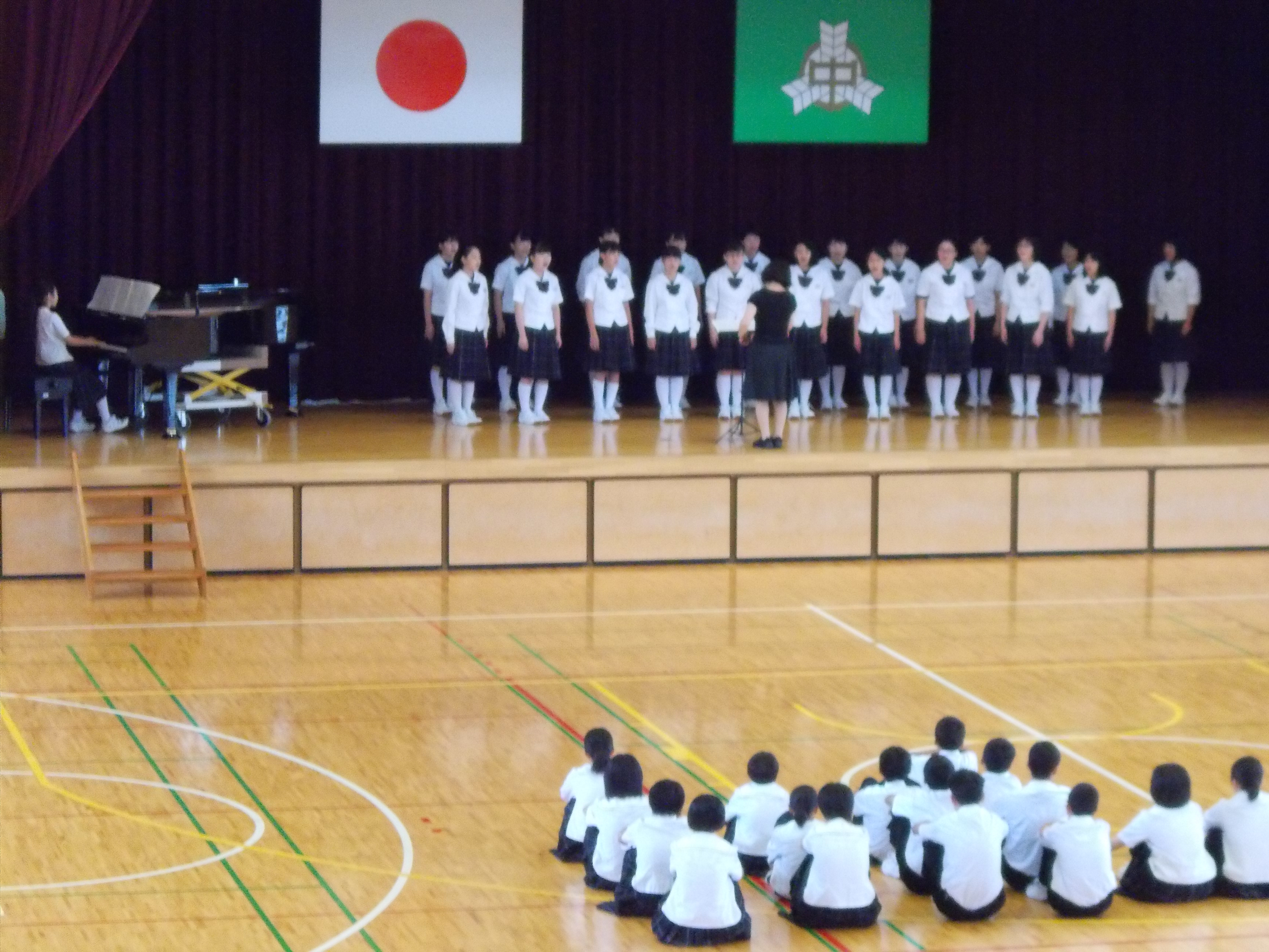 また、英語弁論大会に出場する3名と合唱部の発表も併せて行われました。