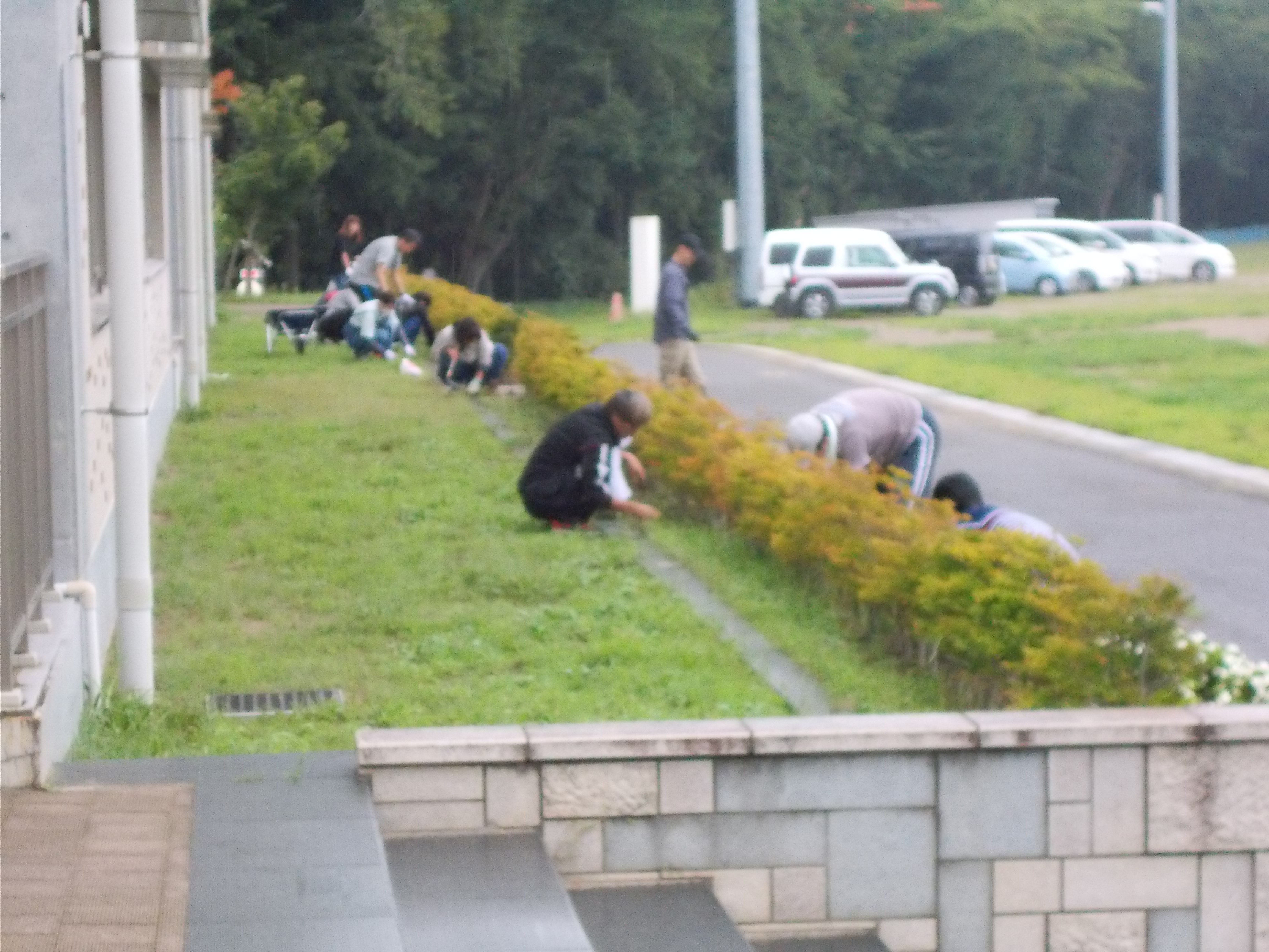 部活動ごとに分かれての草むしりや花壇の手入れ、三缶ウィークなどで集まった