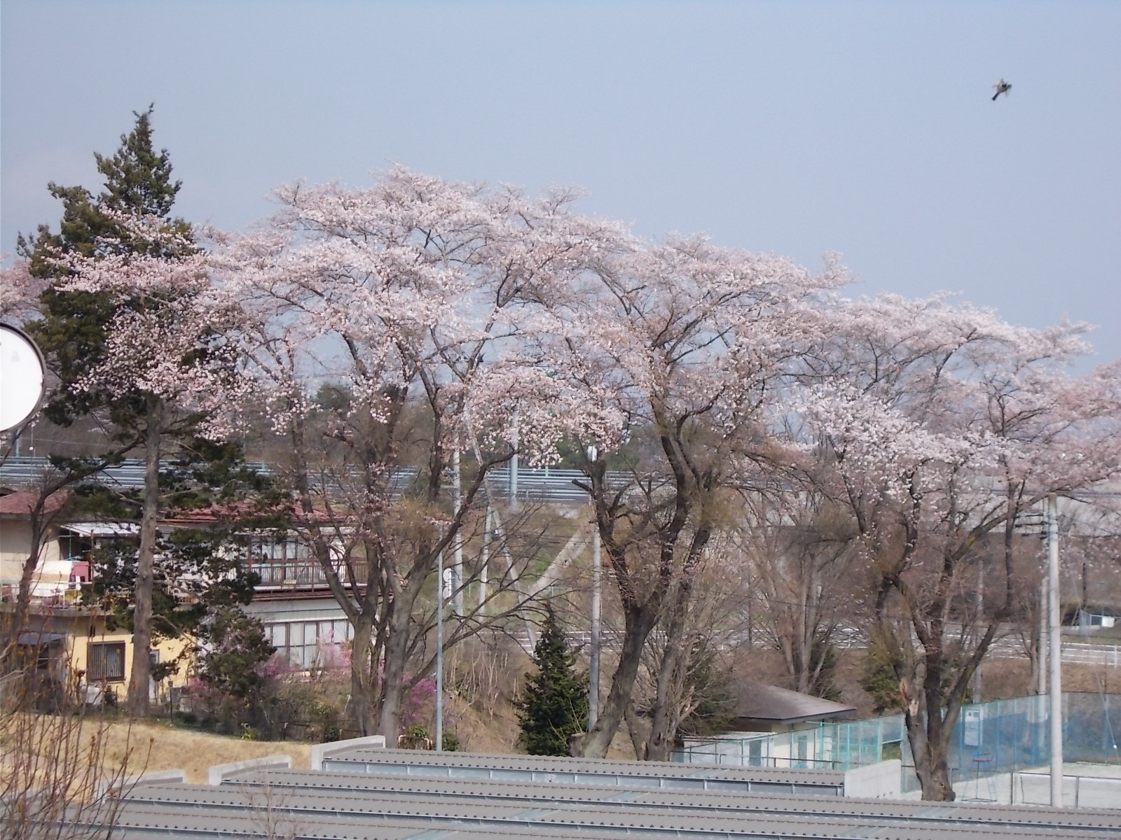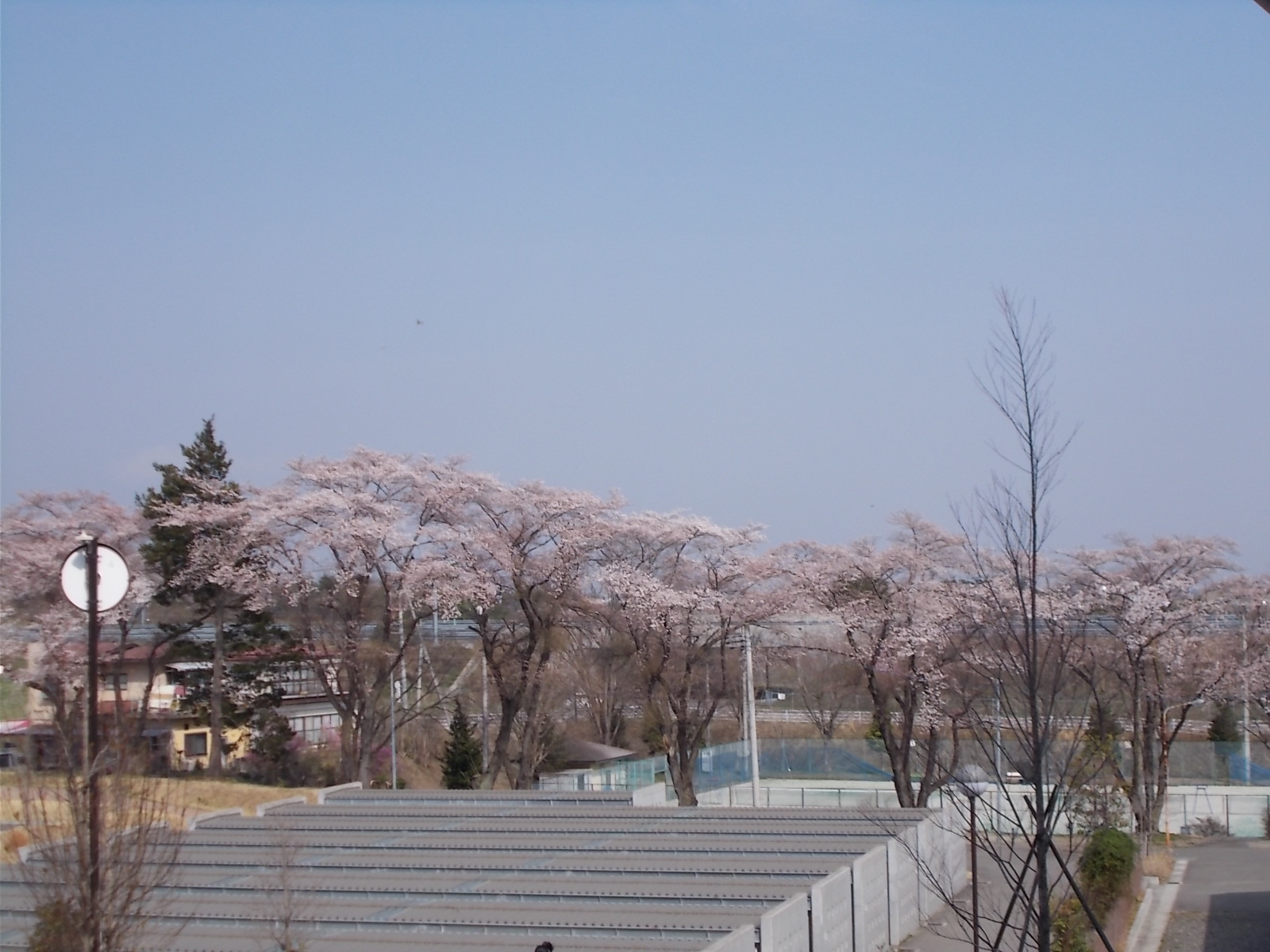 矢吹中学校の桜も遠くから見ても咲いてることが分かるぐらいの