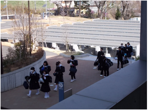 それだけ広い校舎ということです。広いだけではなく、施設のすべてが中学校とは思えないほどのすばらしいつくりとなっています。(人が通ると勝手に電気がついたり、トイレには手の乾燥機がついていたり・・・2016年「福島県建築文化賞 正賞」 で表彰されました)