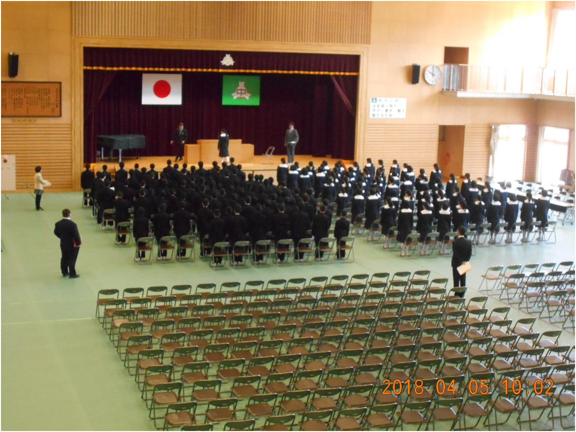 2018年4月5日 16時43分明日の入学式に備え、新1年生が登校し、入学式の練習を行いました。