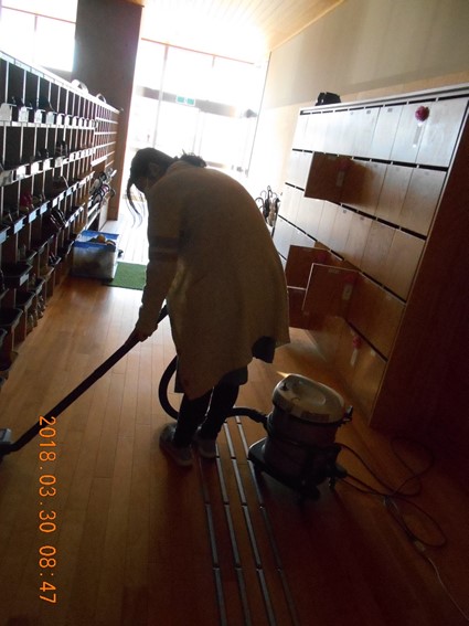 2018年3月30日 09時01分4月から新しく勤務される先生方のために、玄関や下駄箱の清掃を行っている方がいました。