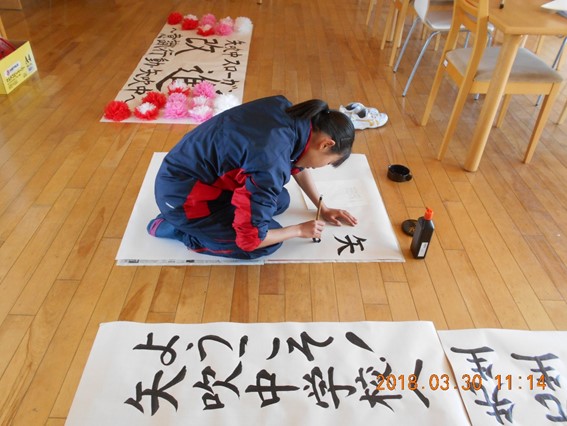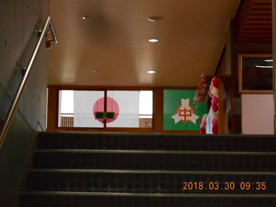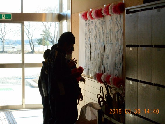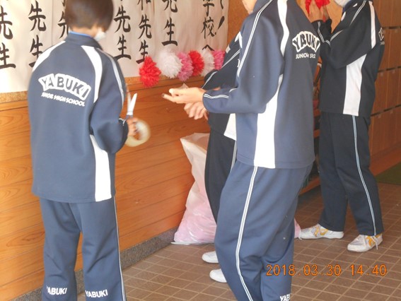 2018年3月30日 14時45分生徒会役員たちが玄関に集まっています。