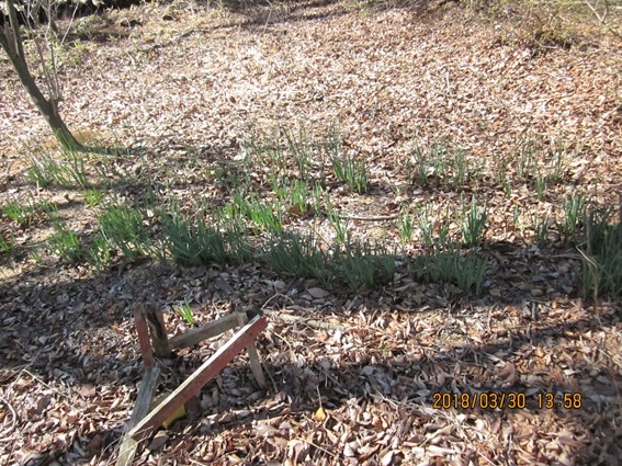 2018年3月30日 14時15分用事があって町内に出かけようと、校門に通じる道を車で走っていると・・・にら?・・・