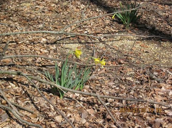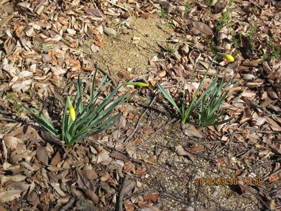 このまわりに水仙の花が、あちらこちらに咲いています。