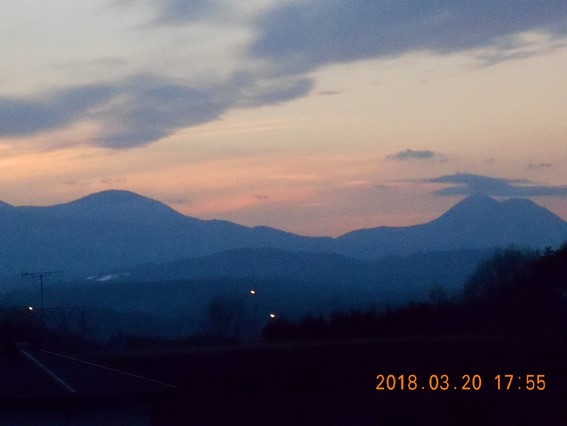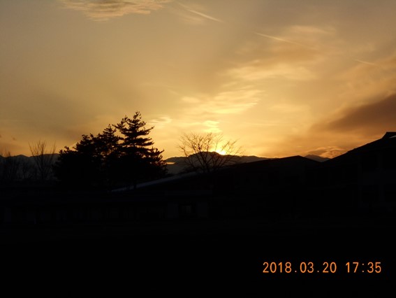 2018年3月20日 18時03分今朝は雨が降っていたのが、午後になり、雨が上がりました。でも、太陽の顔は見えません。