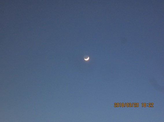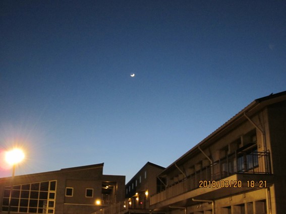 2018年3月20日 18時35分退勤時に校舎を出ると、月が出ていました。