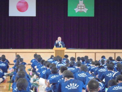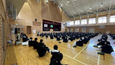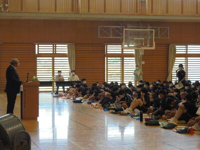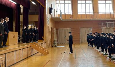 2022年4月1日 14時17分3年ぶりに体育館での対面式を行うことができました。離任される先生方から、最後のごあいさつをいただきました。