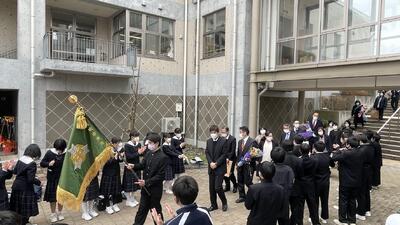 門送には、在校生や卒業した3年生のほか、たくさんの保護者や卒業生の皆さんの参列をいただきました。