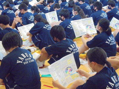 2022年7月20日 18時34分今年度の矢吹創生学の基本テーマは「矢吹町の未来をよりよくしよう」であり、生徒は自分達が具体的にどのようなことができるのか考えてみることになります。そこでぜひ一緒に考えてみるべきは、SDGsについてです。すでに5月に基本的な学習はしていますが、さらに具体的に私たちの身の回りのことや世界情勢に照らし合わせてみて考えてみることが今回の学習のねらいでした。今回は、SDGsビジネスマスターの資格を持ち、矢吹町地域おこし協力隊や矢吹町SDGs推進コーディネーターをお務めの今村稔様を講師にお招きして学習会を実施しました。(3年生は7月4日(月)、2年生は7月15日(金))