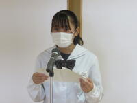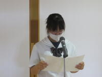 本日の終業式は、新型コロナウイルス感染予防のためリモート形式で実施し、全校生は所属の教室でモニター画面を見ながらの参加となりました。校長式辞の後、各学年代表の3人の生徒による「1学期を振り返って」の作文発表も行いました。