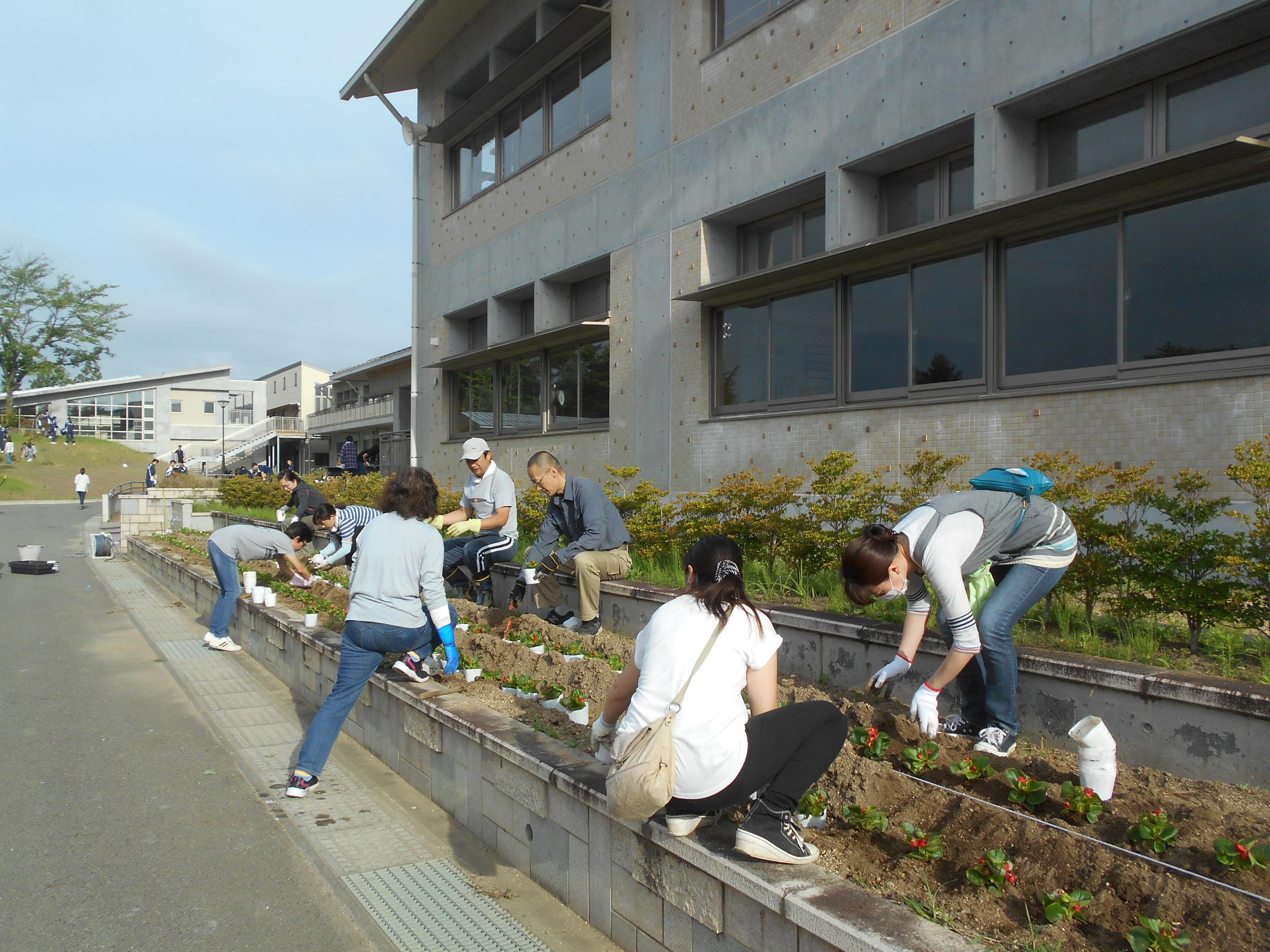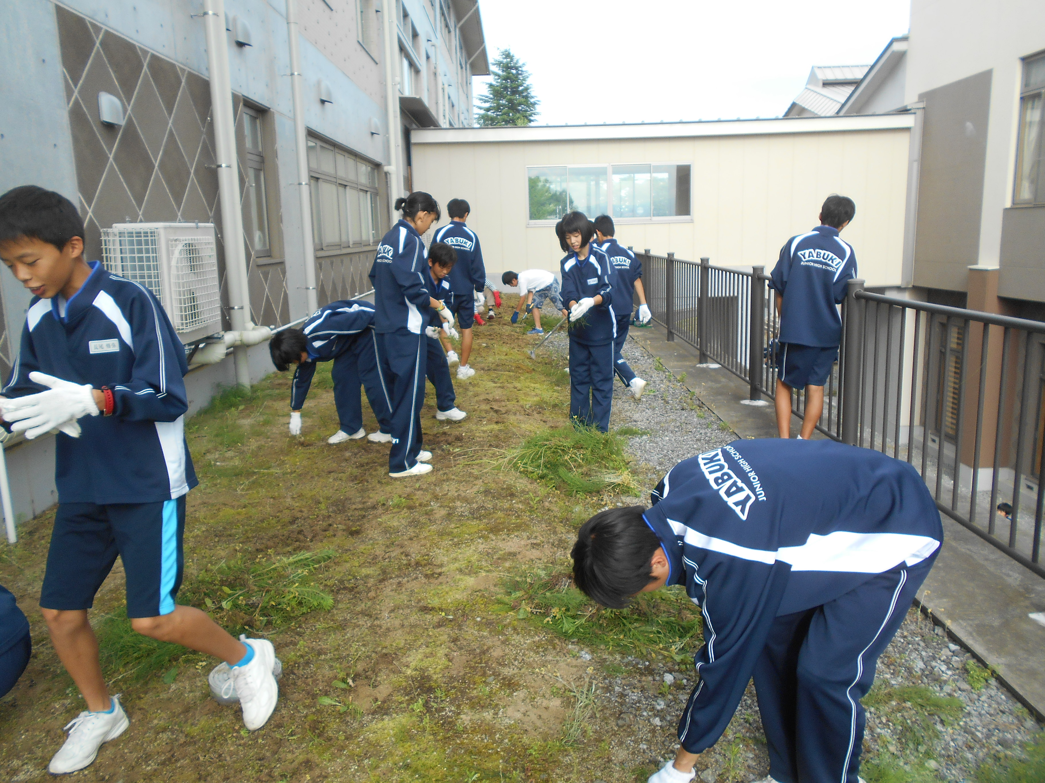 綺麗に取り除かれました。花壇も整備されました。学校では、毎日、用務員さんが草刈りをして