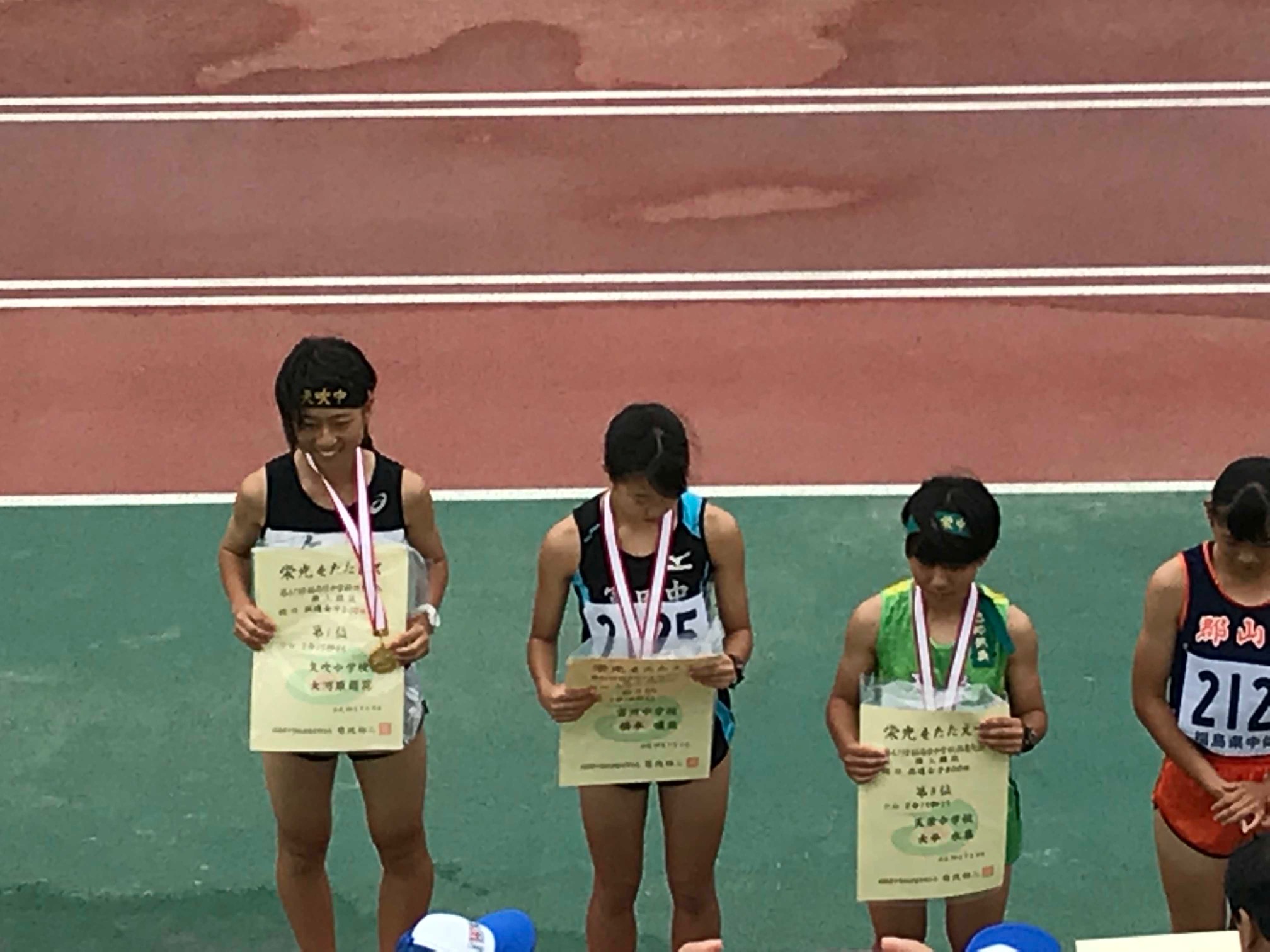 ①女子共通800mで、大河原萌花さんが第1位となり、東北大会出場です。
