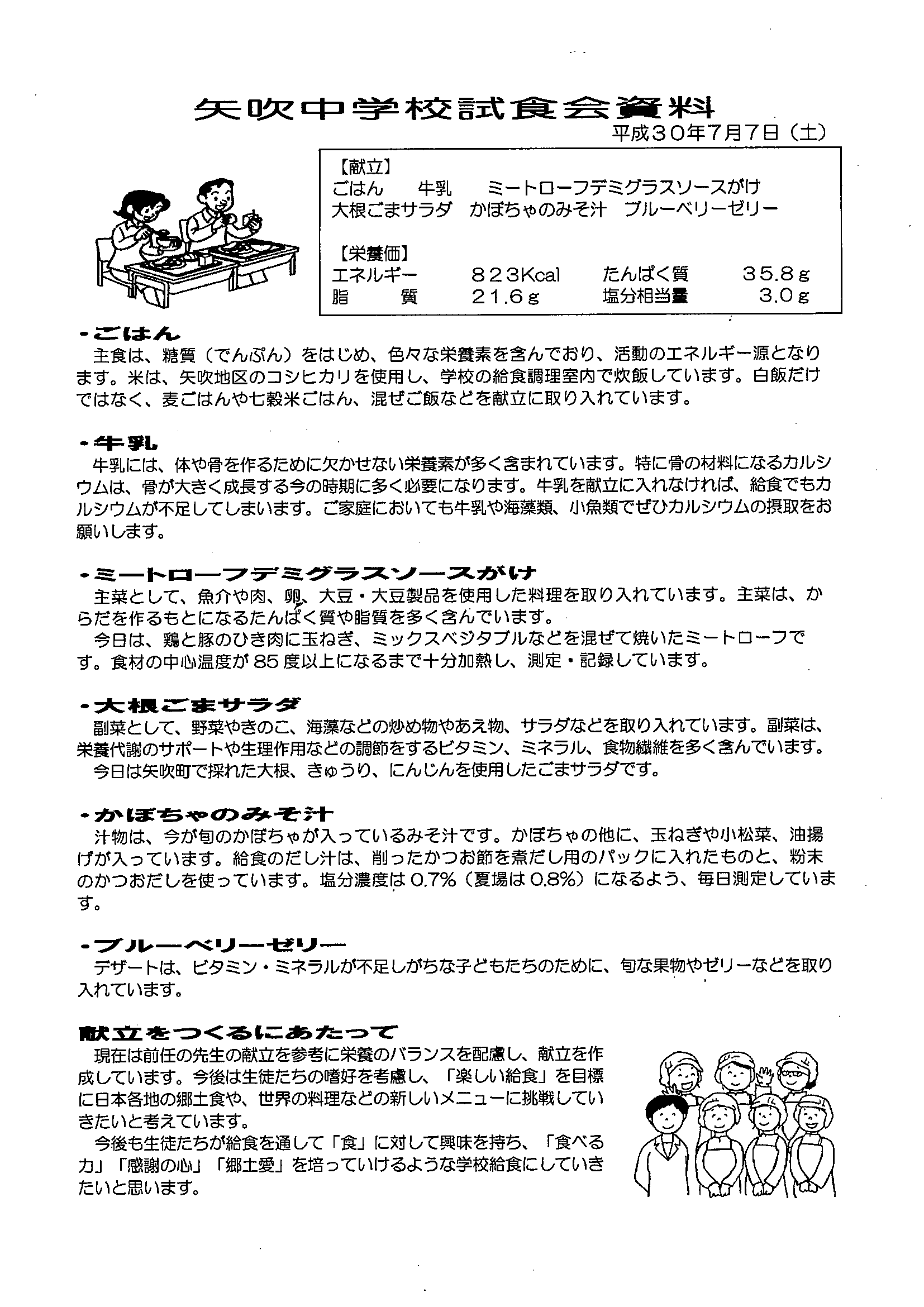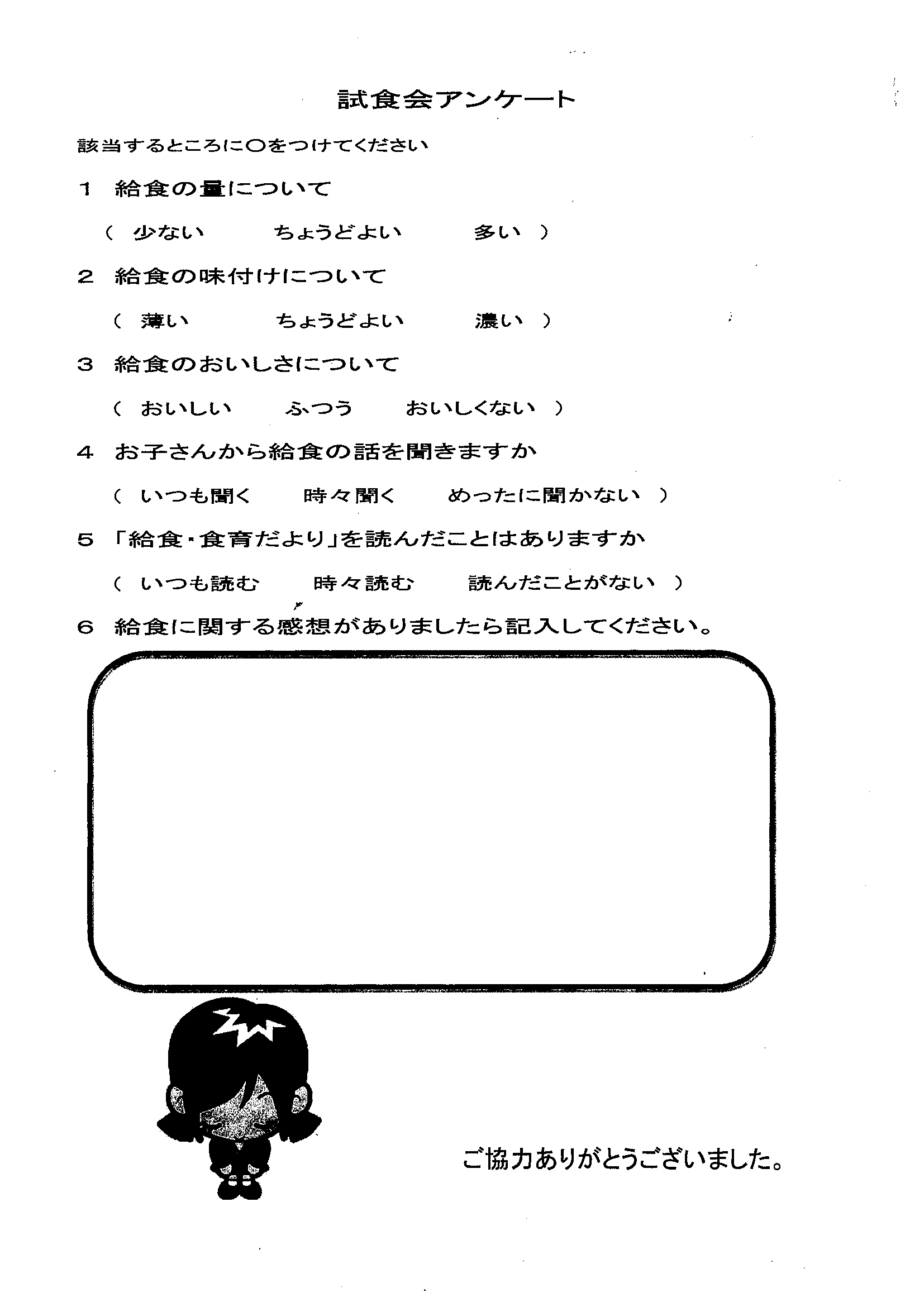 給食メニュー等の参考にさせていただきたいと思います。