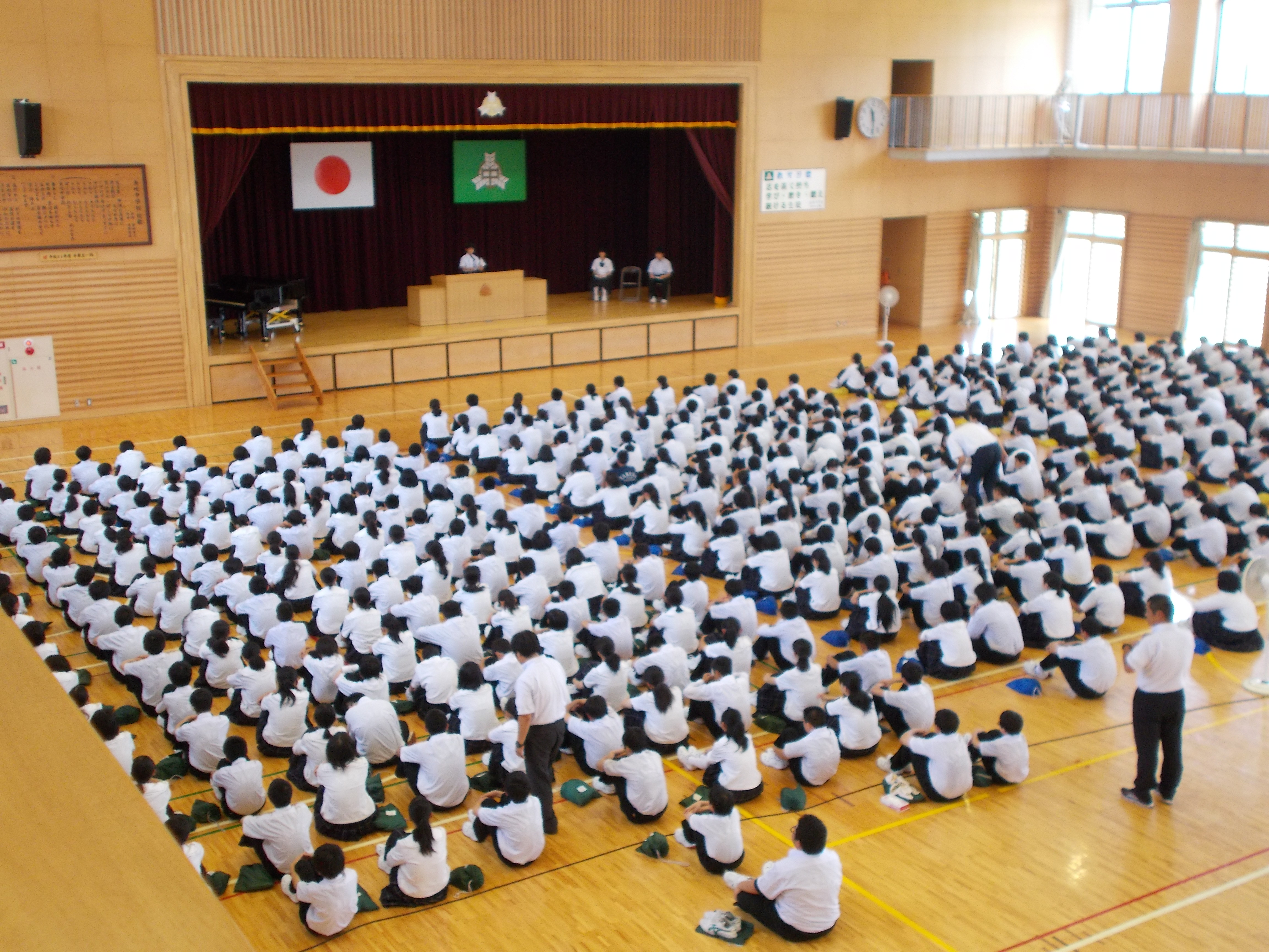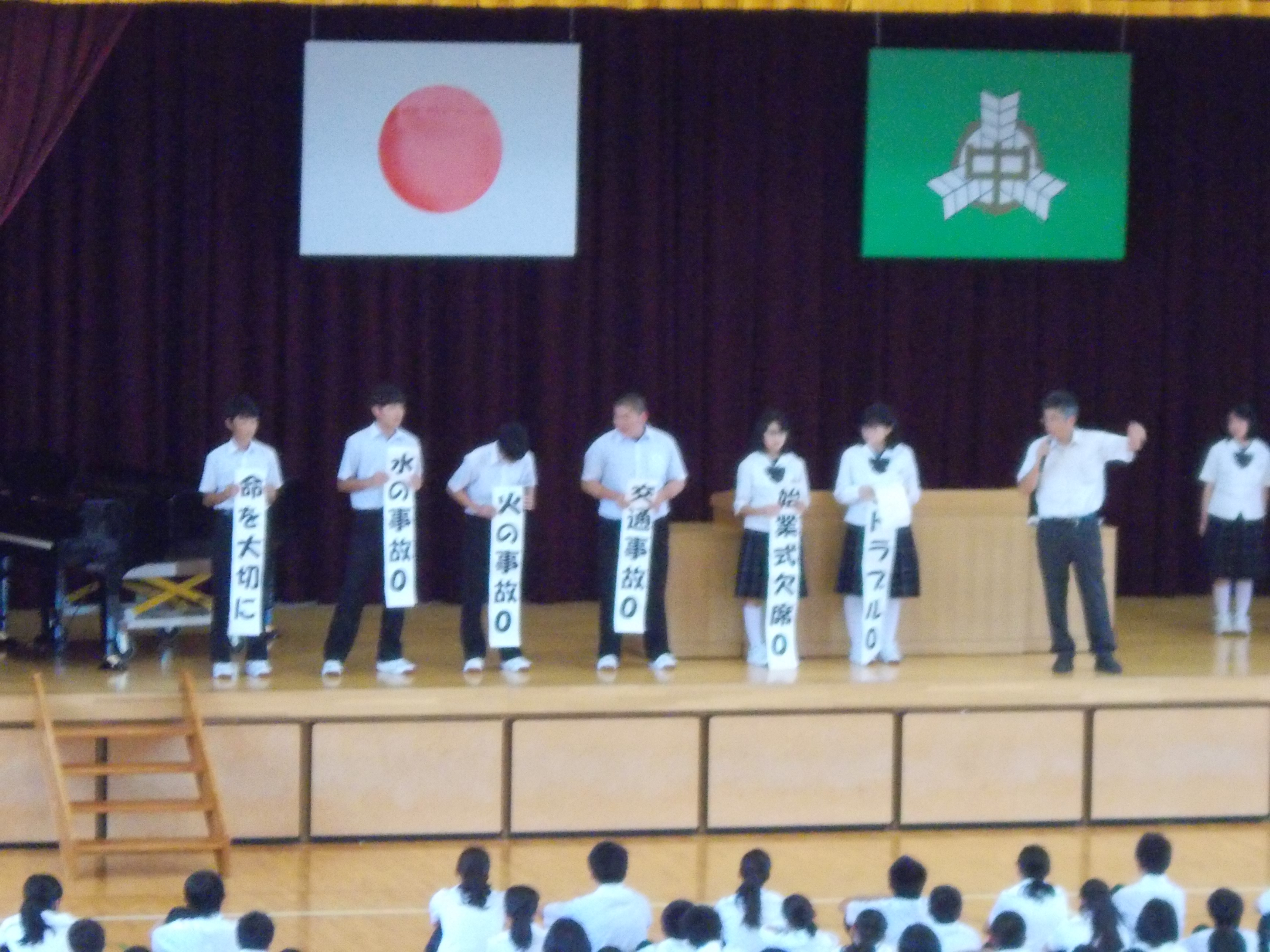 始業式終了後には、生徒指導の先生より夏休み中の事故が0だったことや