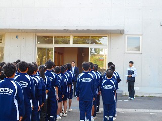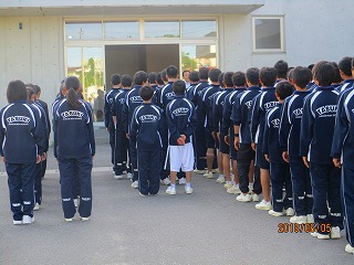 本日、体育館前で中体連の出発式が行われました。