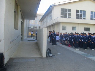 生徒が無事に集合し、学級委員長を中心に出発式が行われました。