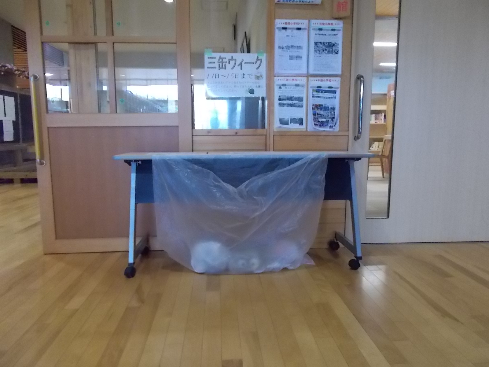 ↑生徒昇降口に袋がありますのでそちらに入れていただきたいと思います↑