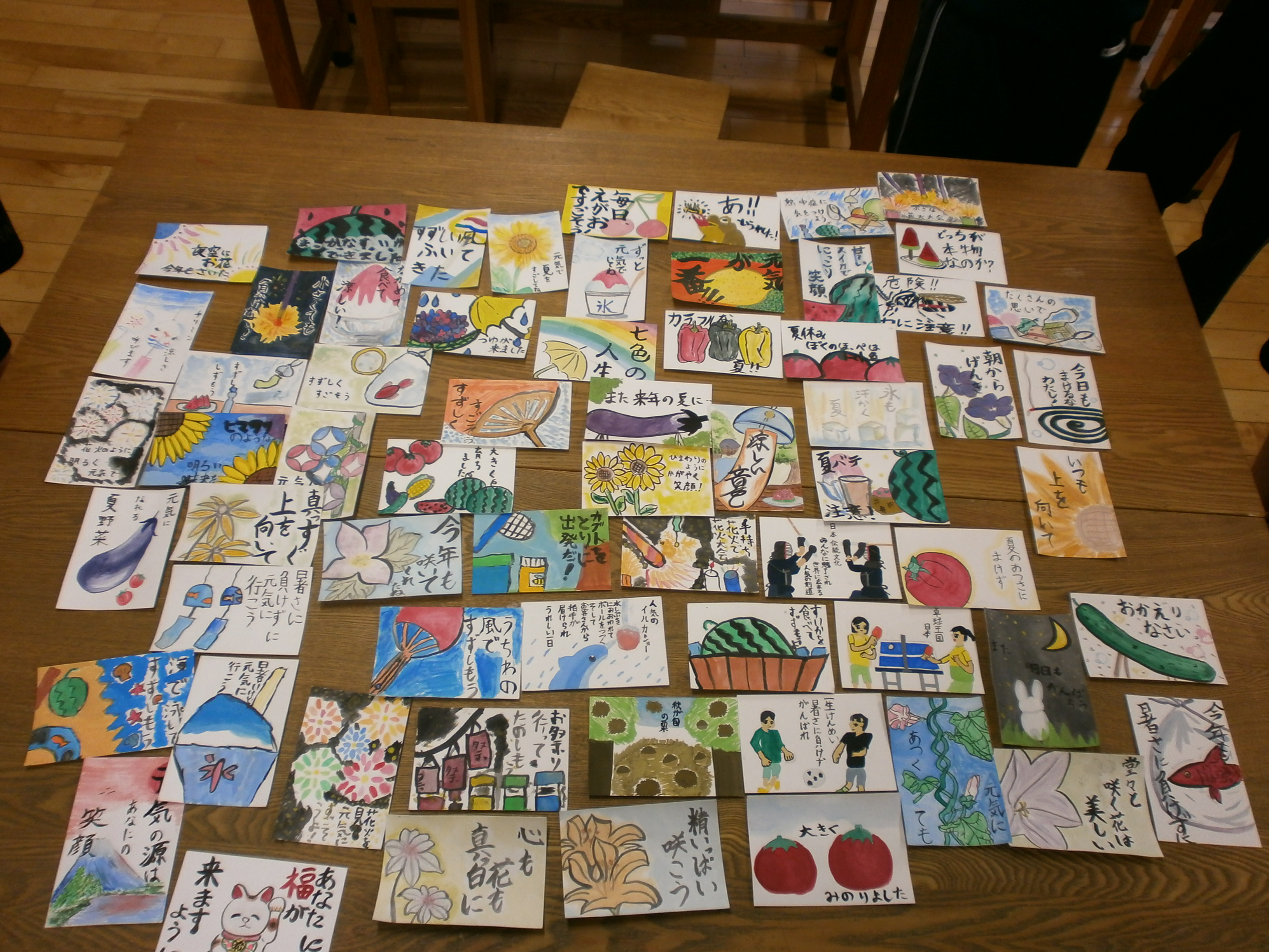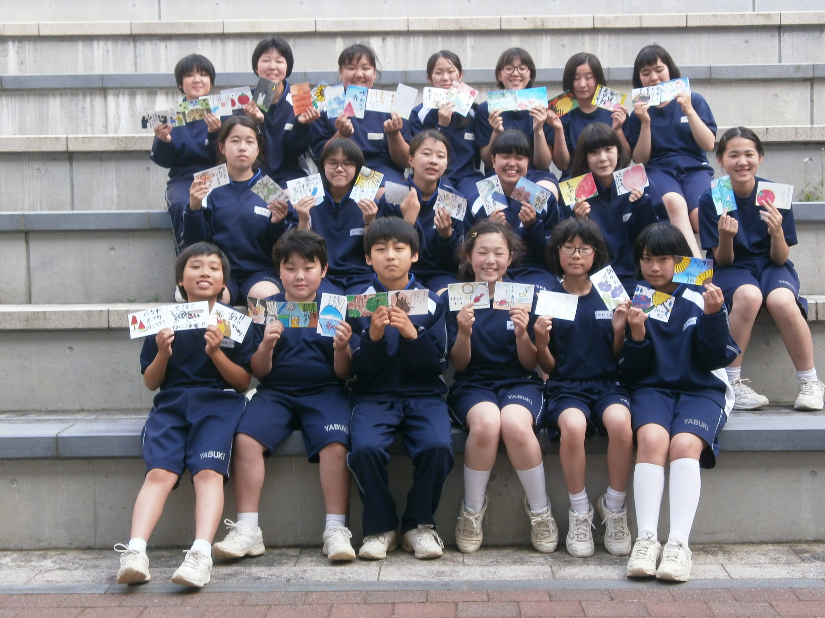 ありました。さっそく、美術部が引き受け、絵手紙「100枚」を作り