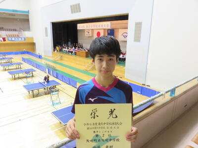2024年8月5日 09時35分8月2日(金)に行われた東北中学校卓球大会男子シングルスに出場した向尾幸村君(2年)は、見事2位入賞を果たしました。3年生の強者がそろう中での決勝戦進出で大変立派でした。おめでとうございます。8月24日(土)、25日(日)に新潟市で行われる全国大会でも持てる力を十分に発揮してきてください。