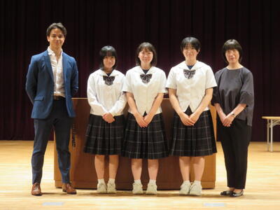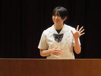 2024年9月5日 18時05分8月28日(水)に矢吹町文化センターにおいて、東西しらかわ中学生英語弁論大会が行われました。東西しらかわ地区の18の中学校から、暗唱の部28名、創作の部14名が参加しました。この大会で、本校から参加した3人の生徒は2つの部門で1位を、またもう一人も6位を獲得し、全員入賞を果たすという快挙を成し遂げました。暗唱の部では、曲山美優さん(3年)が”Meow !”という作品を発表し、見事1位を獲得しました。さらに、泉川りこさん(3年)も”Somebody Loves You, Mr.Hatch”という作品を発表し6位入賞を果たしました。また、創作の部では、三村優奈さん(3年)が”To be, to be, ten made to be !”と題した「私はパイロットになりたいという夢の実現にチャレンジすることを、英語を使ってコミュニケーションするチャレンジとなぞらえながら述べる」という内容の自分で書いた英語の作文を発表し、1位を獲得するという素晴らしい結果を残しました。1位となった2人は昨年に引き続きの受賞でお見事でした。6位の泉川さんも、県大会出場権獲得ラインに肉薄する出来映えで素晴らしかったです。それぞれ、夏休み毎日のように学校に来て練習してきた成果を十分に発揮し、大変堂々とした発表ぶりで立派でした。なお、1位を獲得した2人は、9月13日(金)に矢吹町文化センターで開かれる県大会に出場することになります。地元開催で、地元から代表として出場できて、再び素晴らしい発表が出来ることを期待します。