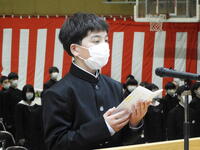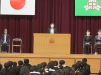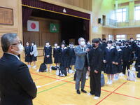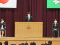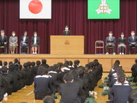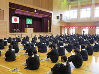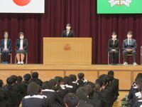 2023年3月23日 18時57分本日、令和4年度の修了式を実施しました。まず、1年生168人を代表して藤田ゆりささんが、続いて2年生160人を代表して石井敦己君が、校長から修了証をしっかり受け取りました。引き続き、校長が1・2年生の成長の跡を振り返り、来年度のさらなる成長に期待するとの式辞を述べました。この後、1年生を代表して佐久間蒼太君が、2年生を代表して佐久間心咲君が、1年間の反省と次年度に向けての抱負を書いた作文を立派に読み上げました。最後に、1・2年生全員が校歌を声に出して初めて一緒に歌い、式を閉じました。生徒はみんな立派な態度で式に臨み、厳粛でけじめの気持ちを新たに持てる式となりました。保護者の皆様も、今年度1年間本当にお世話になりました。明日からの春休みは、お子様にとって事故なく過ごし、しっかり充電して新年度のスタートに備える期間としていただきたいと思います。よろしくお願いいたします。