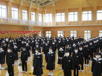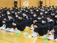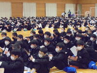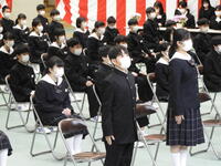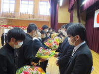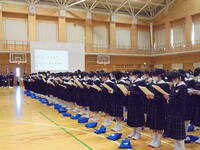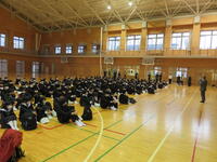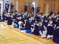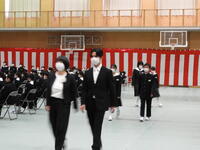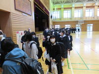 (2)卒業生(3年生)~ 午前8時45分までに体育館で受付をして入場します。