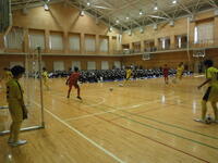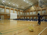 体育館と勤労者体育館の間の扉を開放しますので、音声をお聴きください。